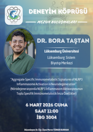 6 Mart Cuma günü saat 11:00’da eski mezunumuz Dr. Bora Taştan ile “Deneyim Köprüsü” (Yüz yüze, IBG 3004)